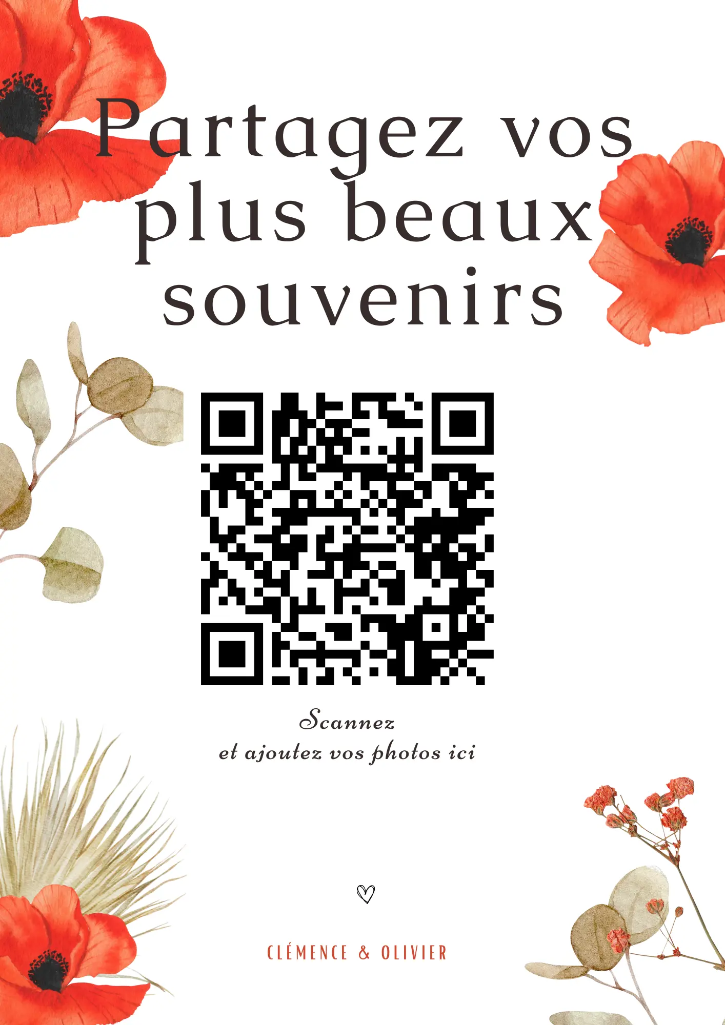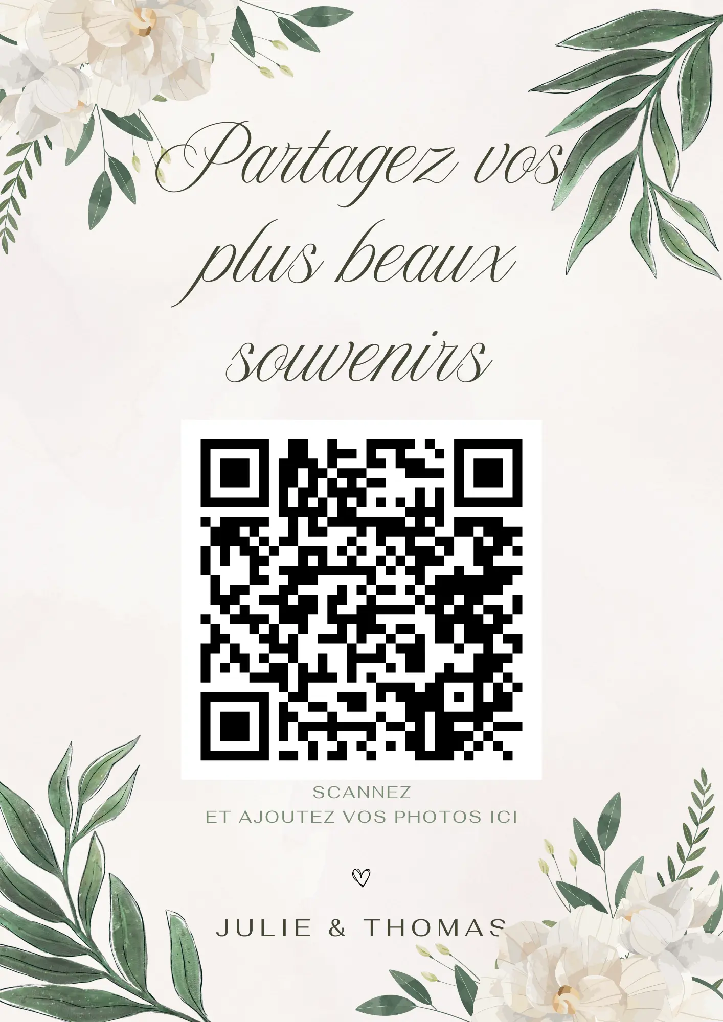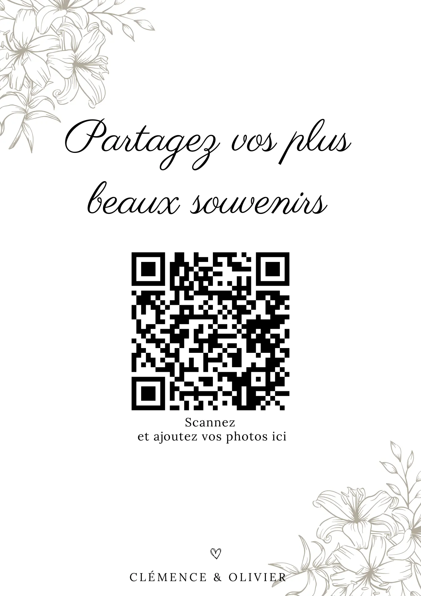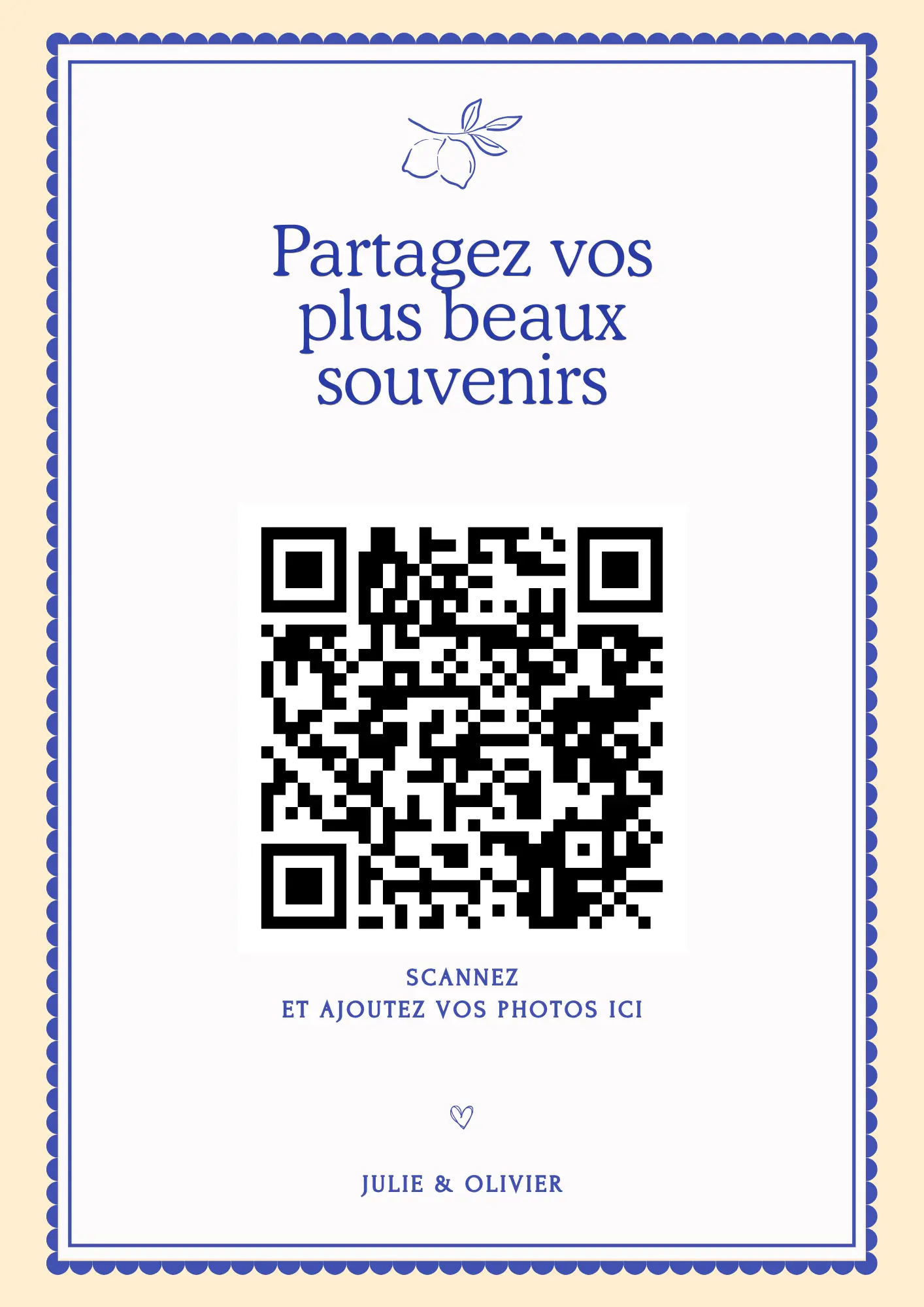Your guests scan your QR code and instantly share their photos and videos in your private album — no app required.