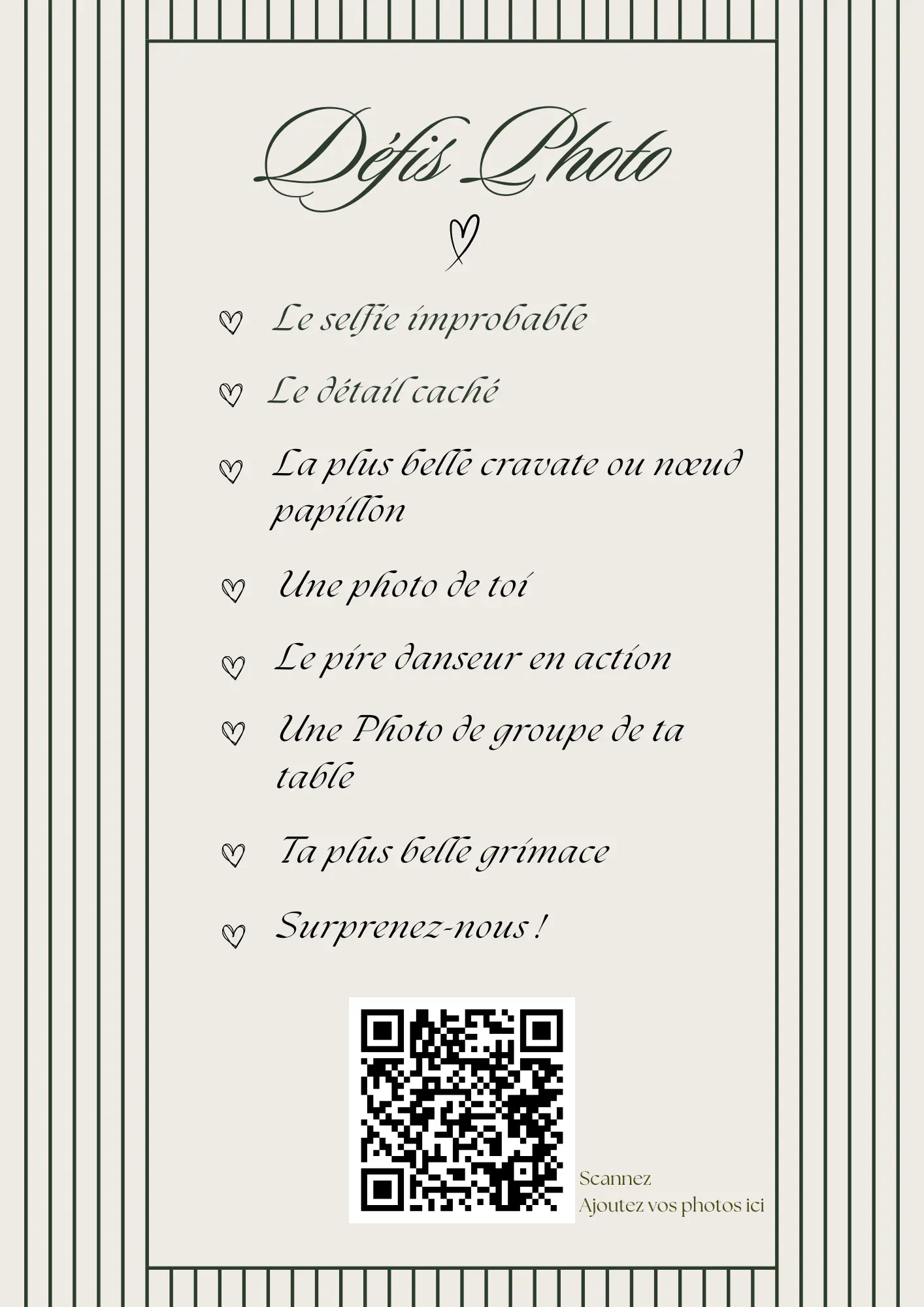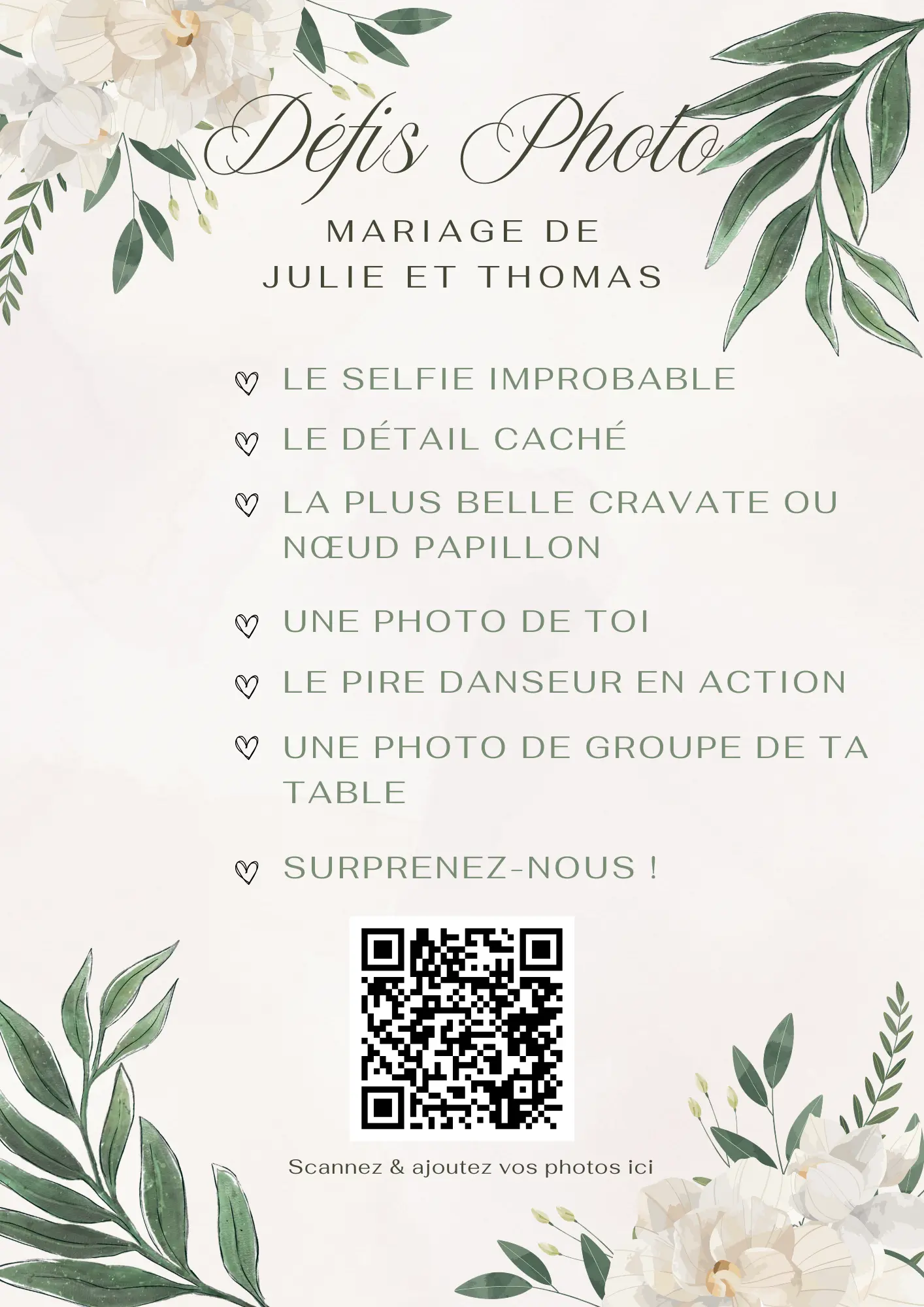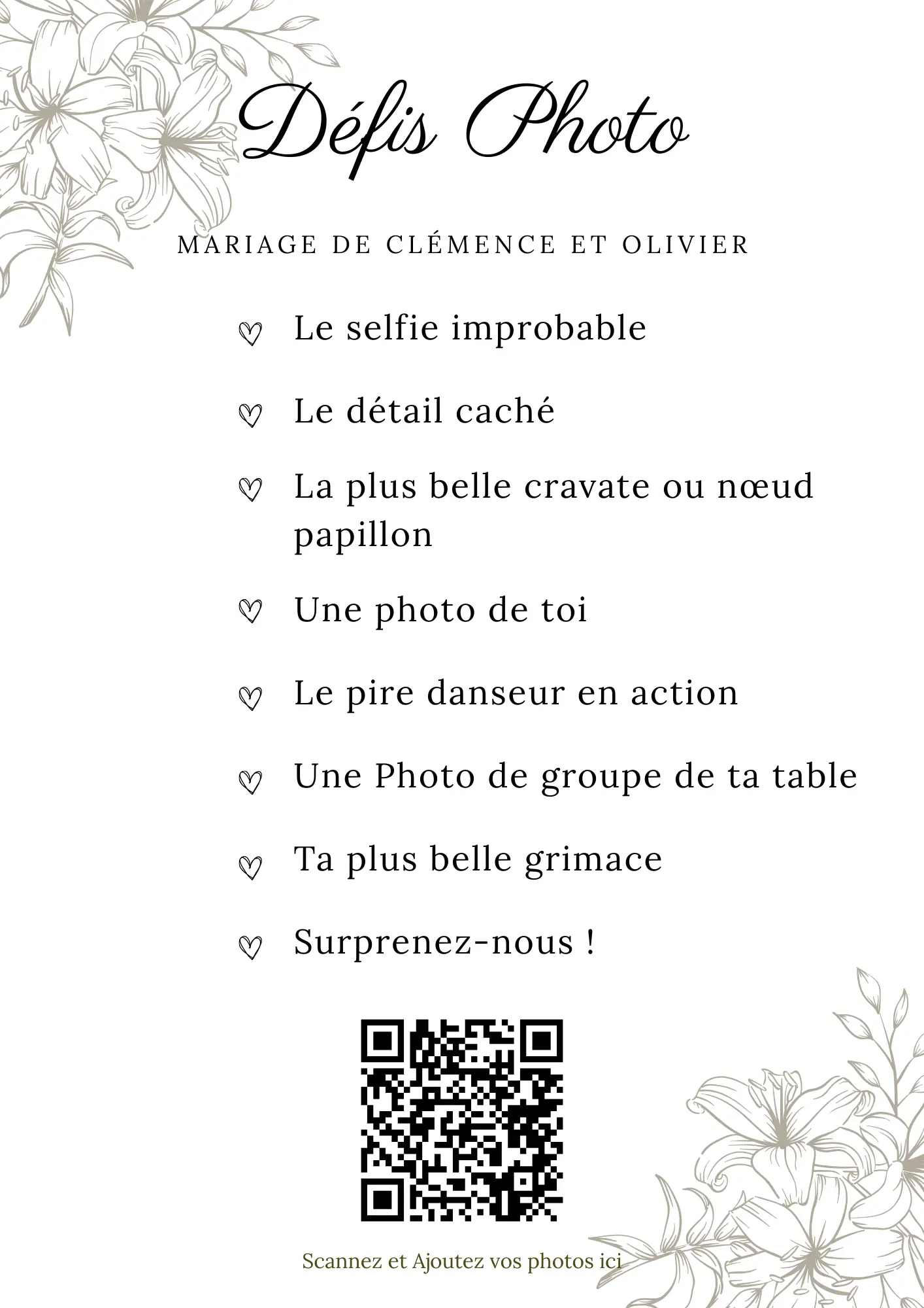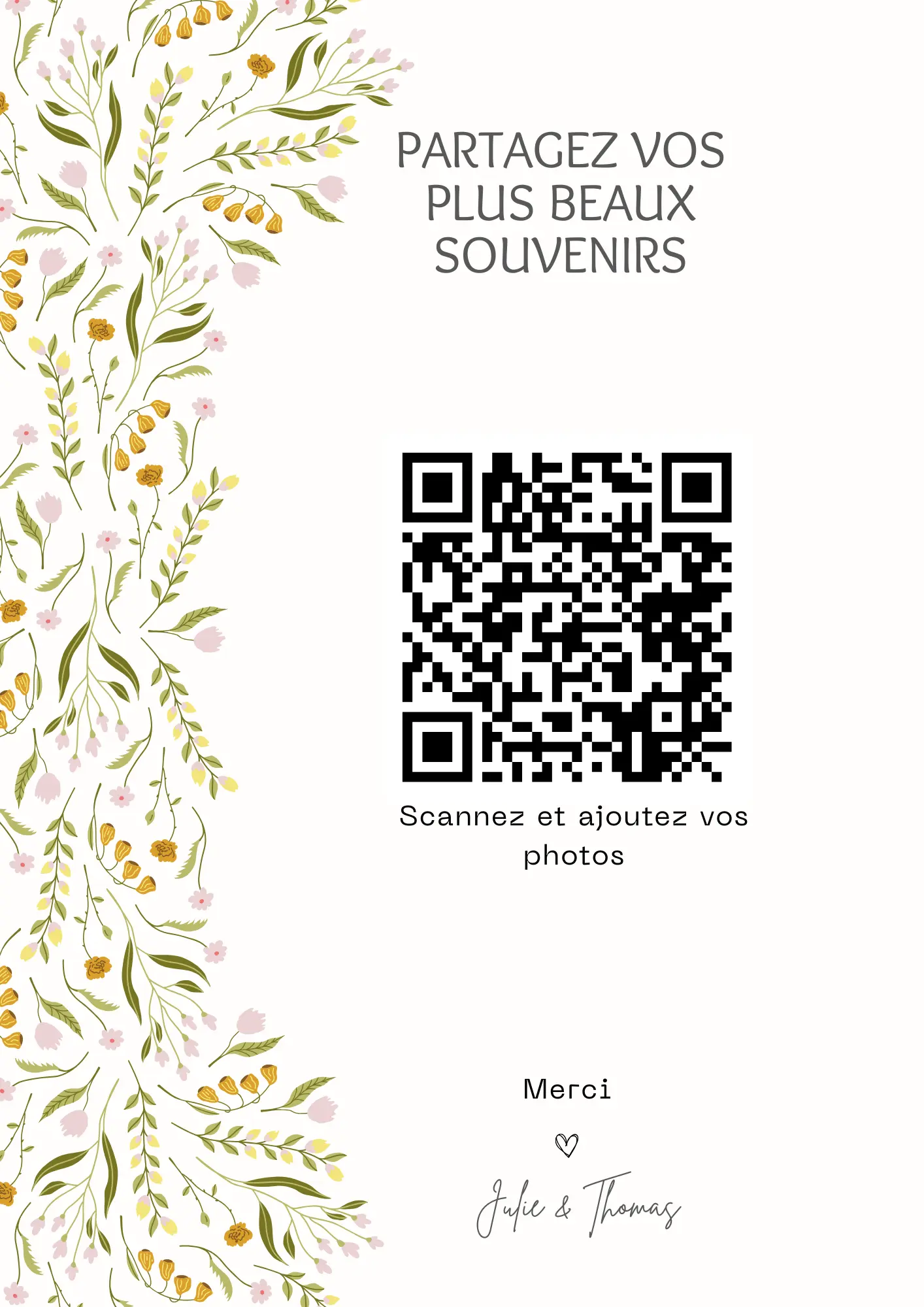 Your guests scan your QR code and instantly share their photos and videos in your private album — no app required.